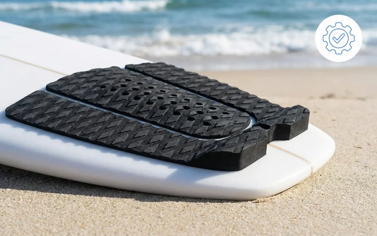 La pose du pad Threo pour planche de surf ne nécessite aucun outil ni compétence particulière. Le design s’adapte facilement à votre planche pour une utilisation immédiate.