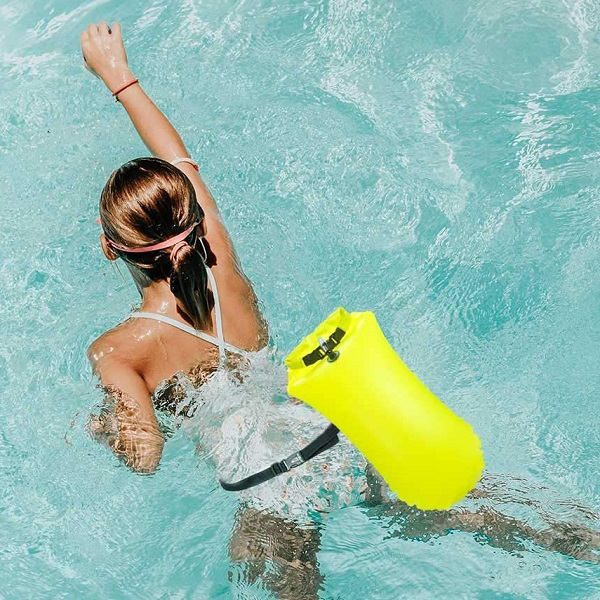 La couleur vive de cette bouée de natation augmente la visibilité dans l’eau. Cette couleur la rend facile à repérer et sert de bouée de signalisation pour les bateaux. Peut être utilisée aussi bien par les adolescents que par les adultes pour le stand-up paddle, la plongée, le snorkeling et d’autres activités de natation. Dans cette bouée, vous pouvez mettre votre téléphone, lunettes de soleil, crème solaire, body glide, masque de plongée, appareil photo, chaussures d’eau, clés et autres essentiels.