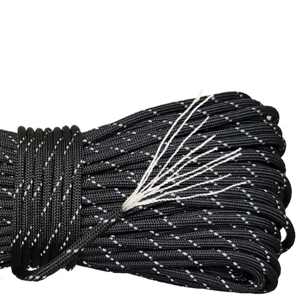 La paracorde peut également être utilisée dans de nombreux scénarios en plein air, tels que le camping, la randonnée, la pêche, le sauvetage, la chute de couteau, les pièges, la fabrication d’armes, et plus encore. Vous pouvez aussi la mettre dans votre sac de survie d’urgence. La corde supportant 250 kg offre un bon équilibre entre résistance et flexibilité. Notre corde utilitaire multifonction THREO résiste aussi à l’humidité, aux rayons du soleil/UV, aux produits chimiques et à l’abrasion. Une fibre réfléchissante supplémentaire sur la surface de la corde ressort particulièrement dans un environnement peu éclairé. Le choix parfait lorsque vous devez utiliser l’article la nuit ou en situation d’urgence.