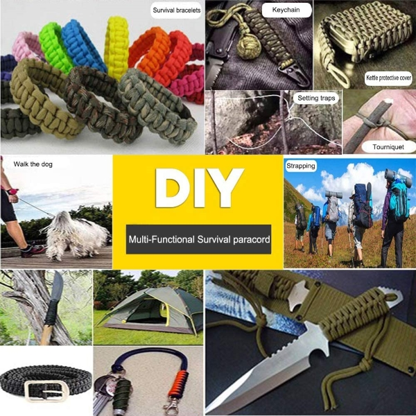 ✔️ MULTIFONCTIONNELLE — La paracorde a de nombreuses utilisations tactiques et militaires pratiques et, en plus de sécuriser la tente, elle est aussi utilisée pour les situations de survie, le camping, la randonnée, la pêche, et même pour fabriquer des bracelets et accessoires.