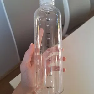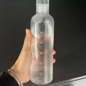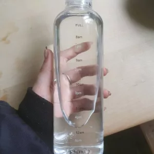 Bouteille très pratique et efficace, mais j’aimerais qu’elle soit un peu plus grande. Les matériaux sont de bonne qualité et les repères horaires aident vraiment à atteindre les objectifs quotidiens de consommation d’eau.