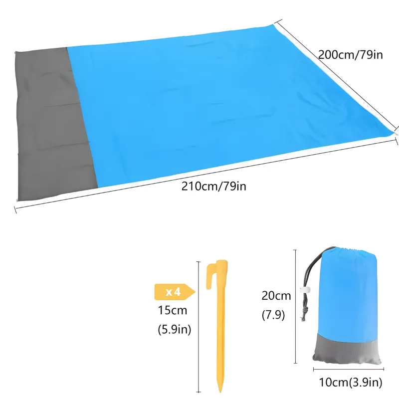 Mon chien et moi adorons ce tapis de plage ! Plus de sable sous mon déjeuner, et ses pattes ne laissent pas de traces. Les piquets pour l’ancrer sont une bonne idée.