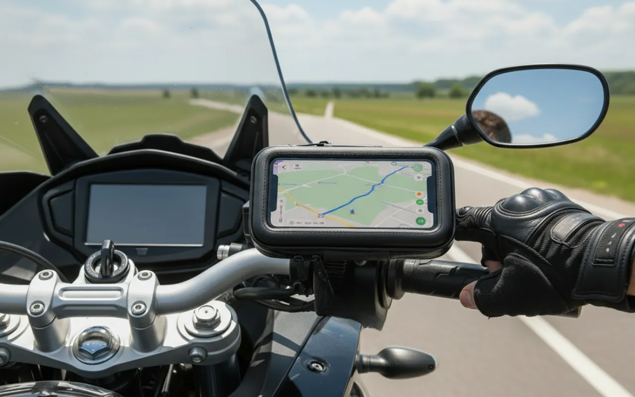 Des routes inondées et une pluie battante n’ont pas empêché mon GPS de fonctionner avec ce support de téléphone. J’adore pouvoir changer de chanson pendant mon trajet même avec des gants mouillés !