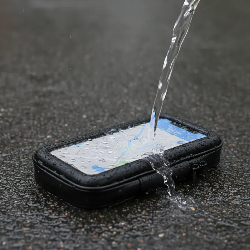 Testé lors d’une course boueuse et rien n’est passé à travers la protection. Je peux zoomer sur les cartes avec mes gants, super pratique.
