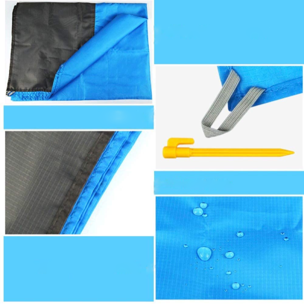 Cette couverture extérieure imperméable est fabriquée en nylon parachute ripstop durable de qualité supérieure et ne se déchirera pas, peu importe la force exercée. Elle est livrée avec une pochette compacte à cordon de serrage équipée d’un mousqueton — très légère et confortable à utiliser. En fin de journée, il suffit de plier cette couverture de plage à sa taille compressée et de la ranger dans sa pochette de transport. La couverture est respirante et lavable en machine, sèche rapidement et ne décolore jamais. Elle est équipée de 4 ancrages fixes, vous n’avez donc pas à craindre que la couverture soit déplacée par le vent ou le sable.