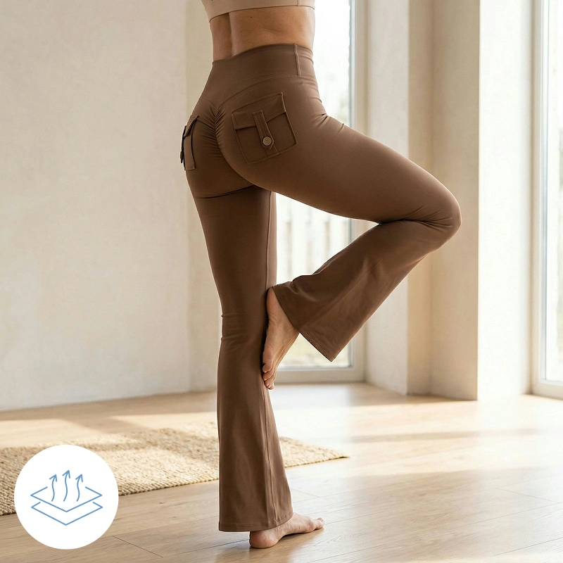 Je porte ces leggings pour le yoga puis j’enchaîne directement avec un brunch. La taille maintient bien mon ventre, et les jambes amples ne collent ni ne pincent nulle part.