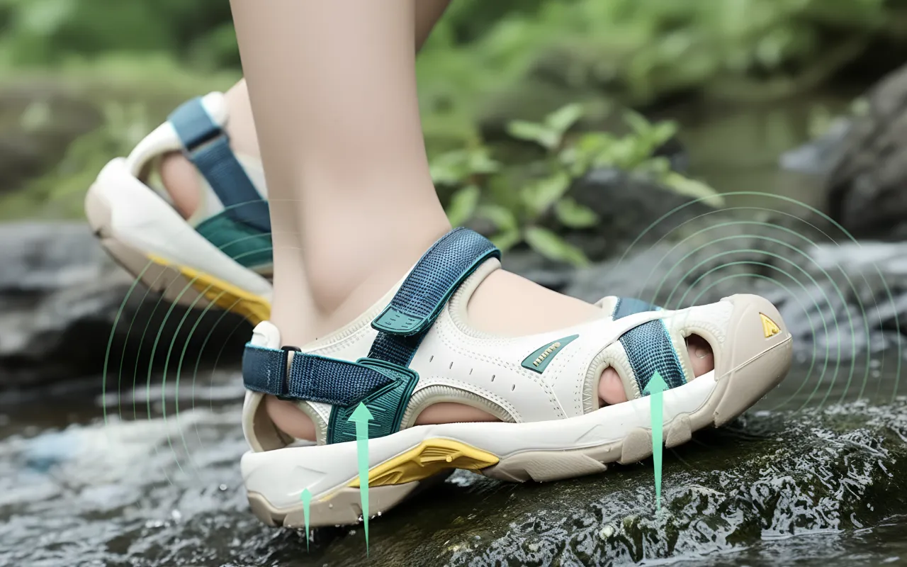 Je les ai achetées pour un séjour au lac. Elles supportent super bien l’eau et le sable ! Le spandex est agréable et ne chauffe pas comme les sandales en plastique.