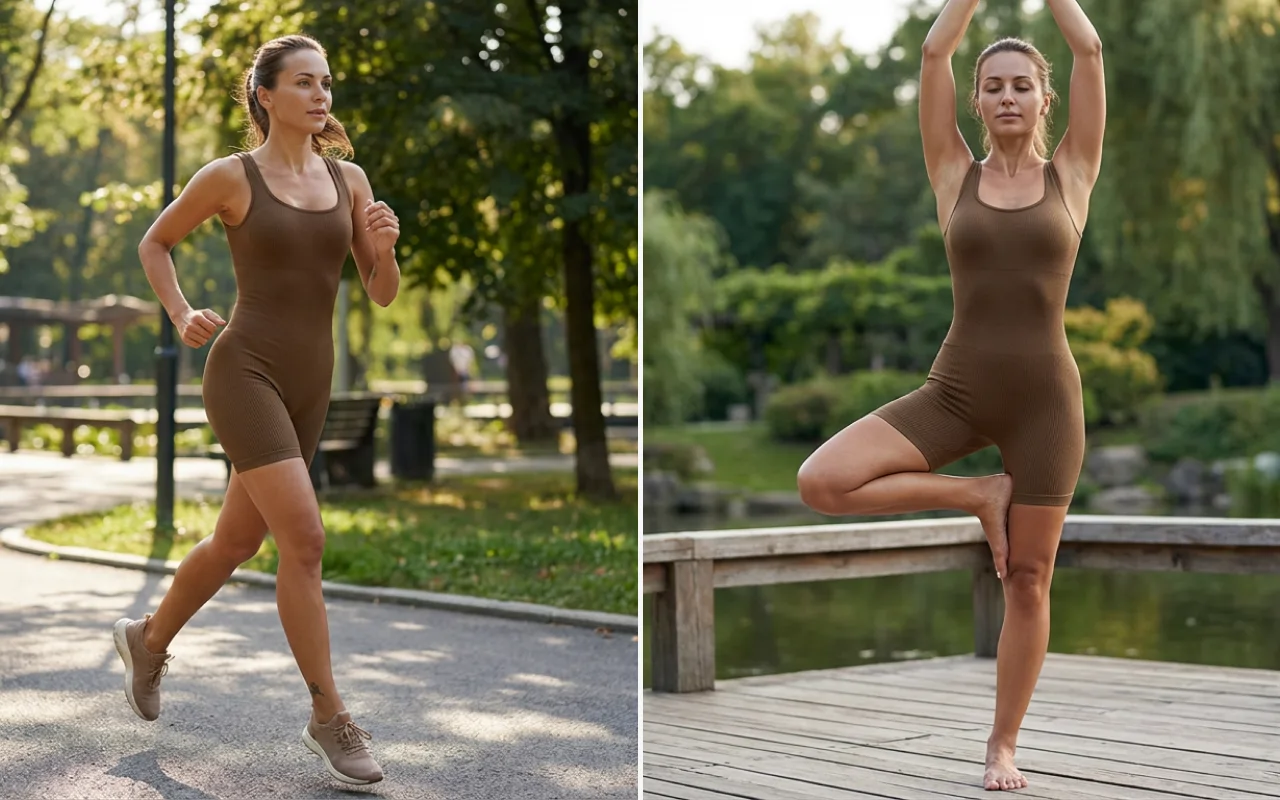 J’ai porté cette combinaison pour du hot yoga et de la musculation, et elle n’a pas bougé une seule fois. Douce, extensible, et elle me fait me sentir vraiment sûre de moi à la salle.