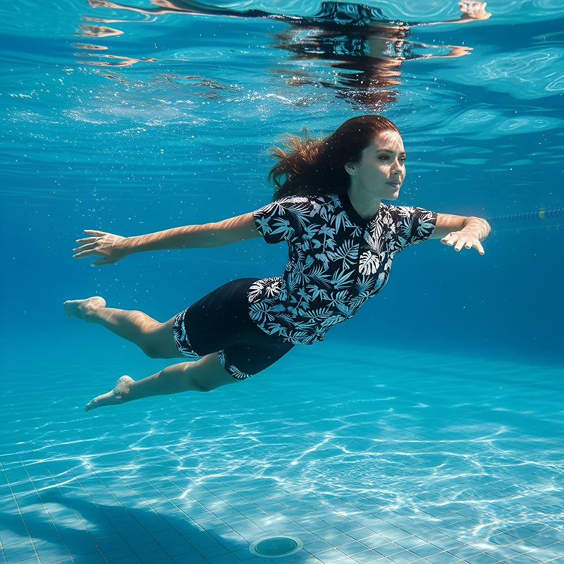 Le tissu extensible vous permet de bouger et de nager sans contrainte. Plongez ou jouez sans sensation de gêne ou de serrage.