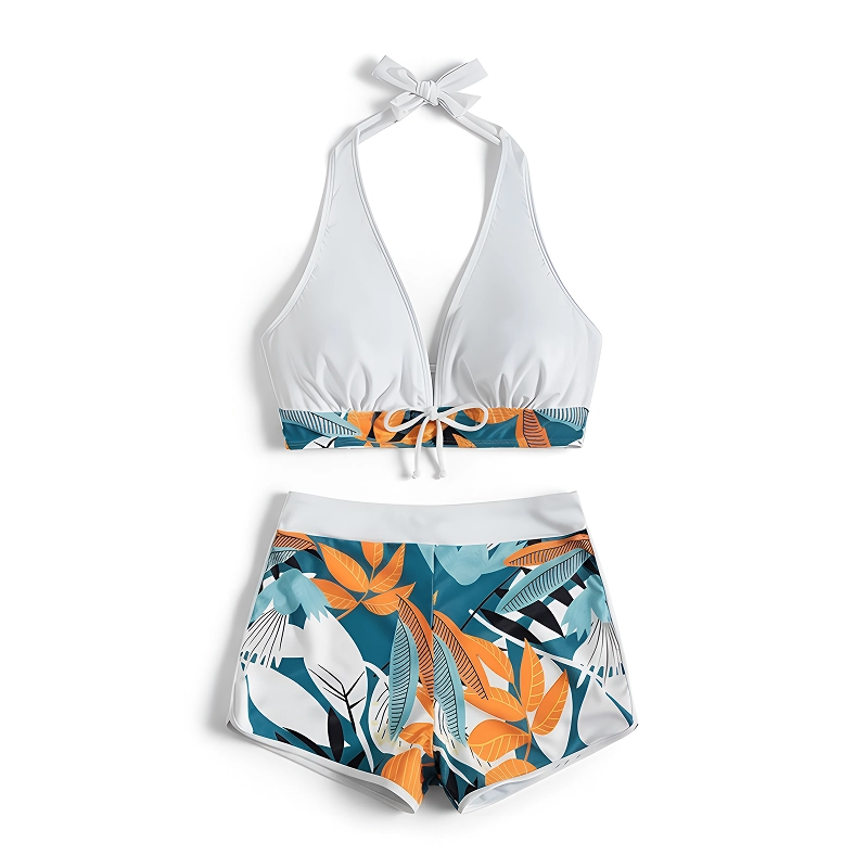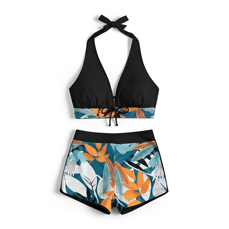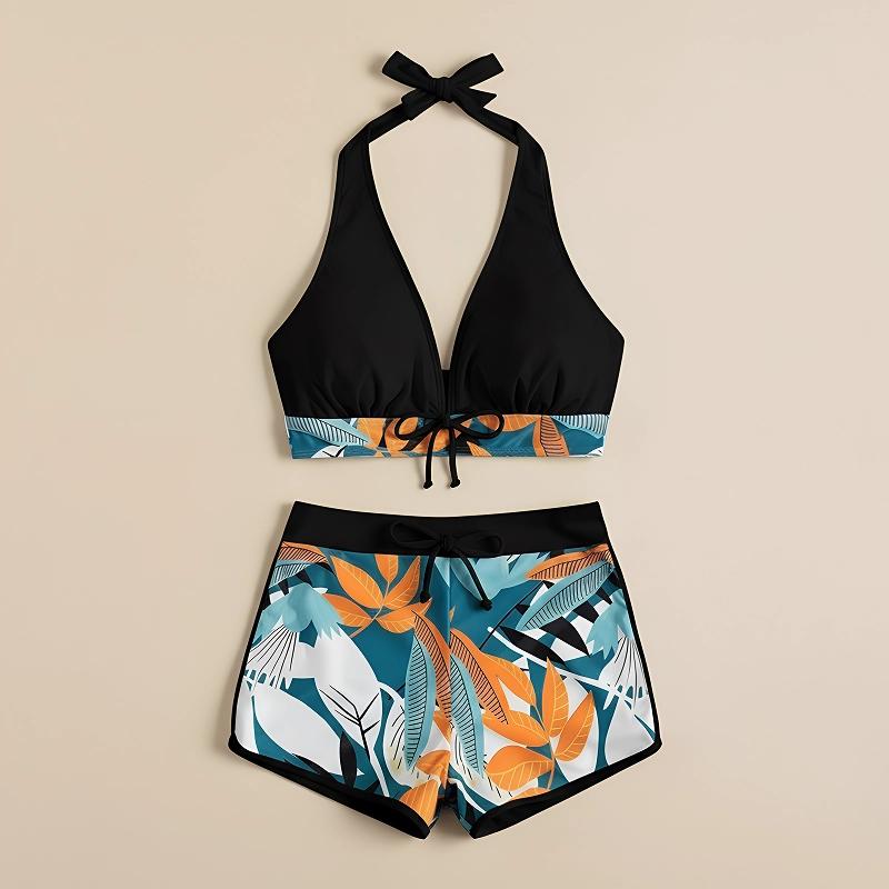 Les motifs colorés vous permettent de vous démarquer à chaque fête à la piscine. Le style short moderne ajoute une touche audacieuse au maillot classique.
